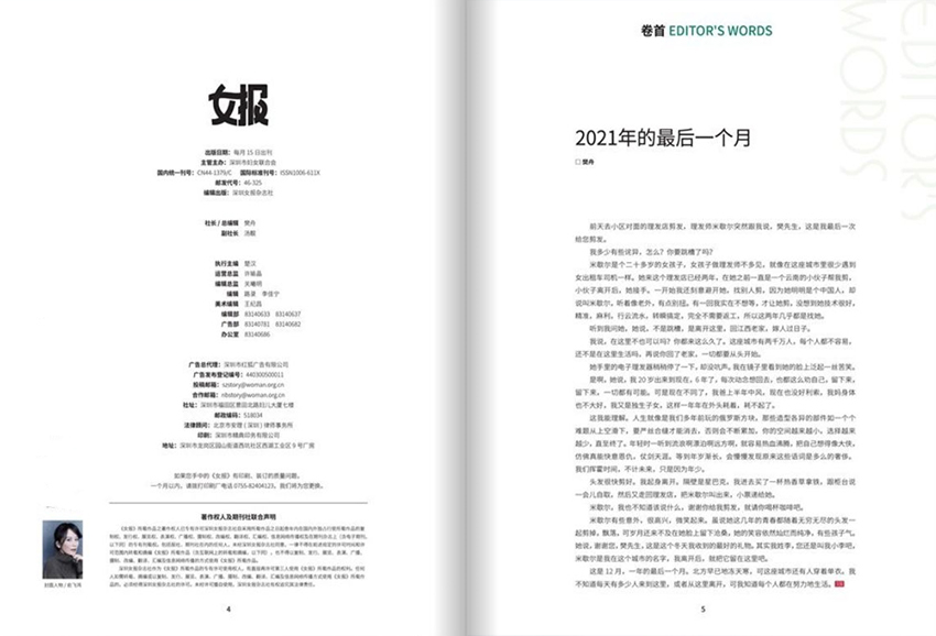 《女報(bào)》雜志是一本面向時(shí)尚女性讀者的雜志,致力于從情感到身心健康,從生活到職場(chǎng)等多個(gè)方面為讀者提供細(xì)致周到的服務(wù)。它記錄著青春純美的情感故事,搜集著鮮辣有趣的時(shí)尚線索。關(guān)注讀者的情感需求。雜志用文字和圖片記錄著不同女性的情感故事,展現(xiàn)著愛(ài)情、友情、家庭和自我成長(zhǎng)等方面的真實(shí)經(jīng)歷。通過(guò)這些故事,雜志希望能夠?yàn)樽x者提供情感支持和啟示,讓她們?cè)诟星槭澜缰懈訄?jiān)強(qiáng)、成熟和幸福。