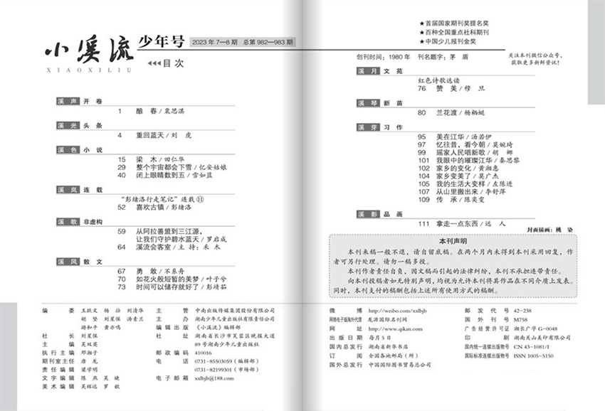 《小溪流》雜志的讀者主要是小學(xué)生和中學(xué)生。對(duì)于這些讀者來(lái)說(shuō),雜志提供了有趣、易懂、具有實(shí)用性的兒童文學(xué)和成長(zhǎng)故事,不僅能夠激發(fā)他們的閱讀興趣和文學(xué)鑒賞能力,還能幫助他們拓展視野、啟迪智慧,促進(jìn)個(gè)人成長(zhǎng)和發(fā)展。除了常規(guī)的兒童文學(xué)和成長(zhǎng)故事,雜志還特別注重培養(yǎng)讀者的創(chuàng)新能力和實(shí)踐能力。每一期雜志都會(huì)設(shè)計(jì)有趣的益智游戲、手工制作、科學(xué)實(shí)驗(yàn)等互動(dòng)環(huán)節(jié),鼓勵(lì)兒童動(dòng)手實(shí)踐、觀(guān)察和思考,培養(yǎng)他們的創(chuàng)新思維和實(shí)踐能力。此外,雜志還定期舉辦各種線(xiàn)上線(xiàn)下的活動(dòng),如讀書(shū)分享會(huì)、寫(xiě)作比賽等,讓兒童有更多的機(jī)會(huì)參與到閱讀和創(chuàng)作中來(lái)。